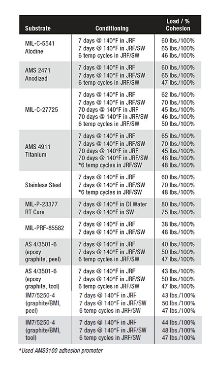 | Repairability2 | N/A 50 piw/100% Cohesive Failure |